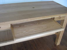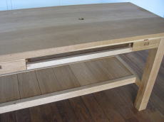 | 引き出しは、PCのキーボードが収納できるようになっています。 引き出せばそのまま使用することができます。 マウスも引き出し上で作業出来るように、引き出しの横幅は60センチあります。 |